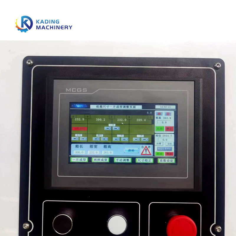 el PLC 2.Using, el codificador rotatorio y el botón eléctrico todo pueden ajustar el tamaño y la altura del cartón que cortan.